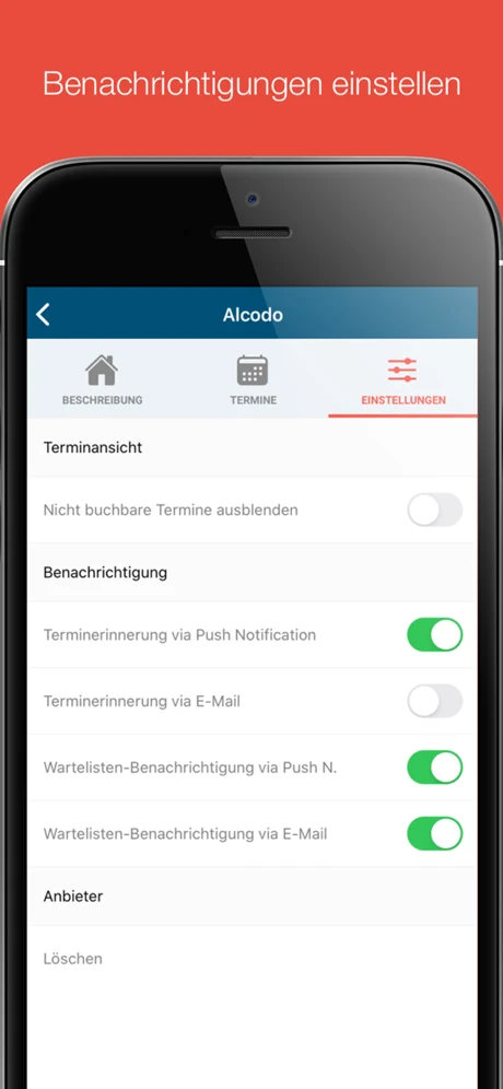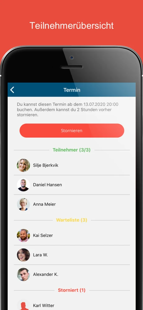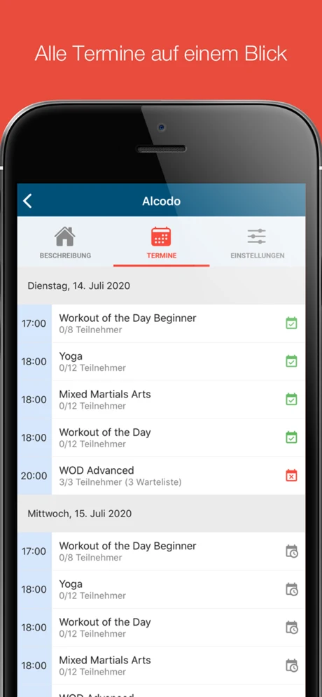 Termine haben automatisch die Warteschlangen-, Benachrichtigung-. Absage-Funktion u. v. m.